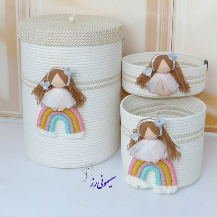 سیسمونی و نظم دهنده قیطان دوزی،سطل اسباببازی و سبد و سطل زباله اتاق نوزاد طرح فرشته