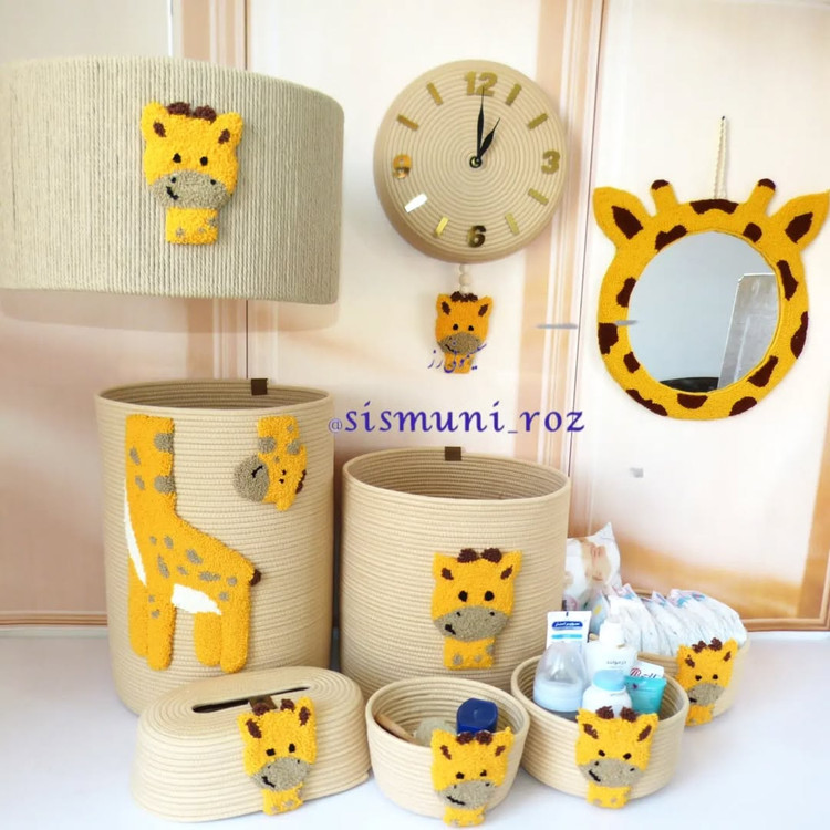 ست نظم دهنده و تزئینات سیسمونی و اتاق کودک طرح زرافه پانچ
