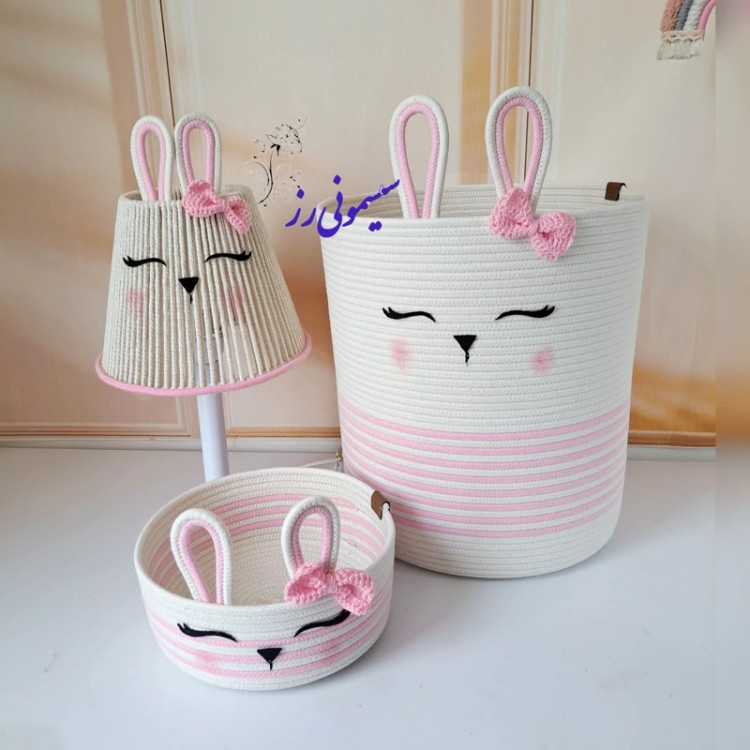 نظم دهنده سیسمونی قیطان دوزی و آباژور کودک مکرومه طرح خرگوش شیری صورتی